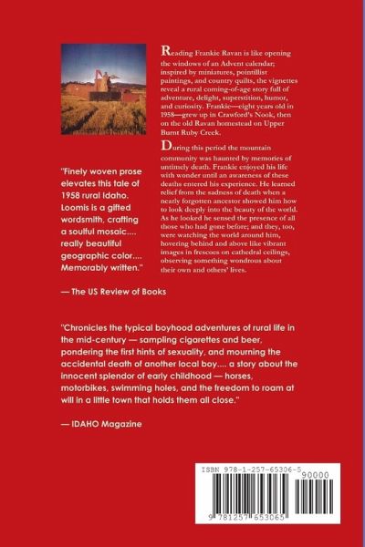 Reading Frankie Ravan is like opening the windows of an Advent calendar; inspired by miniatures, pointillist paintings, and country quilts, the vignettes reveal a rural coming-of-age story full of adventure, delight, superstition, humor, and curiosity. Frankie-eight years old in 1958-grew up in Crawford's Nook, then on the old Ravan homestead on Upper Burnt Ruby Creek. During this period the mountain community was haunted by memories of untimely death. Frankie enjoyed his life with wonder until an awareness of these deaths entered his experience. He learned relief from the sadness of death when a nearly forgotten ancestor showed him how to look deeply into the beauty of the world. As he looked he sensed the presence of all those who had gone before; and they, too, were watching the world around him, hovering behind and above like vibrant images in frescoes on cathedral ceilings, observing something wondrous about their own and others' lives.