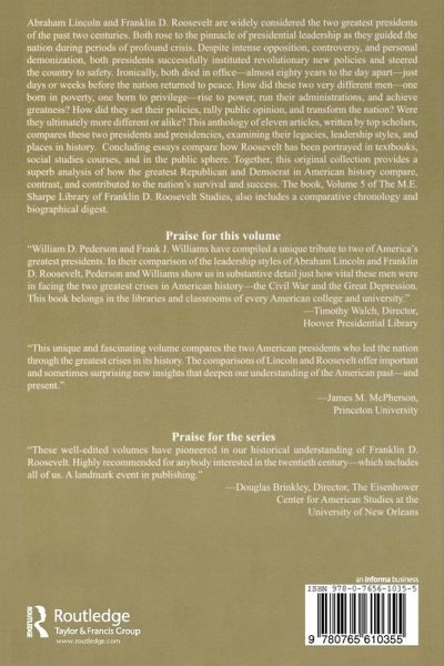 Introduction William D. Pederson Frank J. Williams; Part I Dual Greatness in the White House; Chapter 1 Franklin D. Roosevelt's Abraham Lincoln Ronald D. Rietveld; Chapter 2 Two Wartime Elections: The Presidential Elections of 1864 and 1944 David E. Long; Chapter 3 Abraham and Mary Franklin and Eleanor: Their Growth From Private to Public Comprehension James Chowning Davies; Chapter 4 FDR and Lincoln in Stone (and Bronze) C. Todd Stephenson; Part II Comparative Political Leadership; Chapter 5 Warrior Communitarian and Echo: The Leadership of Abraham Lincoln Winston Churchill and Franklin Roosevelt Frank J. Williams; Chapter 6 An Evaluation of Franklin Delano Roosevelt Glen Jeansonne; Chapter 7 Franklin D. Roosevelt Huey P. Long and Political Leadership: Room for Just One at the Top Glen Jeansonne; Chapter 8 Jesus Lincoln and Beethoven: Three Notes on the Same Grand Chord James Chowning Davies; Part III Teaching a Legacy; Chapter 9 The Depression Eleanor and World War II: What Do Elementary School Social Studies Tell Us About Franklin Roosevelt? Sherry L. Field; Chapter 10 FDR and American Life: Portrayals and Interpretations in Secondary School American History Textbooks O. L. DavisJr. Matthew D. Davis; Chapter 11 Teaching FDR to the Next Generation Matthew Ware Coulter;