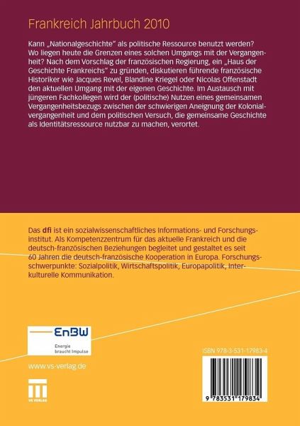 Pressestimmen: "Facettenreich wird die inzwischen kritische Aufarbeitung der französischen Geschichte dargestellt [...]." Jahrbuch Extremismus und Demokratie, 2012 "[...] die Facetten einer sehr französischen Debatte werden hier dem deutschsprachigen Publikum zugänglich gemacht." NPL - Neue Politische Literatur, 2-2012 "Die Jahrbücher zählen zum unverzichtbaren 'Handwerkszeug' für Frankreichforscher, aber auch für alle, die sich über grundlegende Entwicklungen jenseits des Rheins informieren wollen." ZParl - Zeitschrift für Parlamentsfragen, 3-2011 "Die Beiträge [...], die von hochkarätigen Autoren stammen, erweisen sich als im Wesentlichen historisch akzentuiert [...]." Portal für Politikwissenschaft (www.pw-portal.de), 24.05.2011