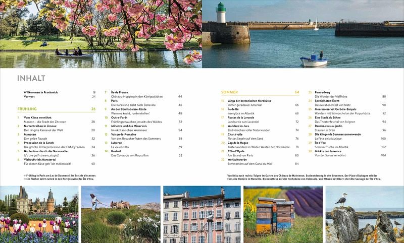 abwechslungsreiche Auswahl saisonaler Ziele und Aktivitäten für Ihren Urlaub in Frankreich60Natur-, Kultur-, Kulinarik-, Aktiv- und Geheimtipp-Highlightspraktische Reisetipps und inspirierende Fotos machen das Reisebuch zum optimalen Reisebegleiter
