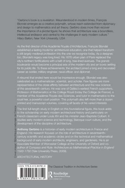 The first full-length study in English to appear on this polymath, this book adds to the scholarship on early modern architectural history and particularly on French classicism under Louis XIV and his minister Jean-Baptiste Colbert. It studies early modern science and technology, Baroque court culture, and the development of the discipline of architecture.