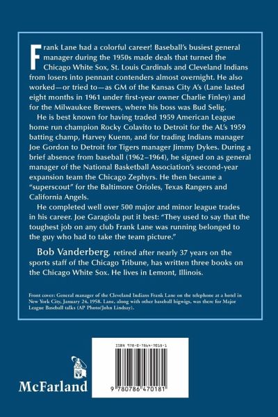 The book follows the colorful career of Frank Lane, who as baseball's busiest general manager during the 1950s made the deals that turned the Chicago White Sox, St. Louis Cardinals and Cleveland Indians from losers into pennant contenders almost overnight. He also worked--or tried to--as general manager of the Kansas City A's (Lane lasted eight months in 1961 under first-year owner Charlie Finley) and for the Milwaukee Brewers, where his boss was Bud Selig. He is best known for having traded 1959 American League home run champion Rocky Colavito to Detroit for the AL's 1959 batting champ, Harvey Kuenn, and for trading Indians manager Joe Gordon to Detroit for Tigers manager Jimmy Dykes. During his brief absence from baseball (1962-1964), he signed on as general manager of the National Basketball Association's second-year expansion team, the Chicago Zephyrs. He became a ""superscout"" for the Baltimore Orioles for several years and, after leaving Milwaukee, had the same job with the Texas Rangers and, finally, the California Angels. He completed well over 500 major- and minor-league transactions in his career. Joe Garagiola put it best: ""They used to say that the toughest job on any club Frank Lane was running belonged to the guy who had to take the team picture.""