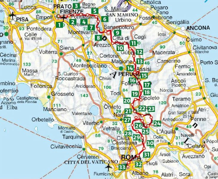 Der Franziskusweg ist einer der bedeutendsten italienischen Pilgerwege: auf den Spuren des heiligen Franz von Assisi führt er von Florenz über Assisi nach Rom. Entlang der 600 Kilometer langen Route erlebt man Ruhe und Besinnlichkeit, wie sie auf vielen großen Pilgerrouten kaum noch zu finden sind. Die Wanderung führt durch die malerischen Landschaften der Toskana, Umbriens und Latiums - Regionen voller Natur, Kultur und spiritueller Inspiration.