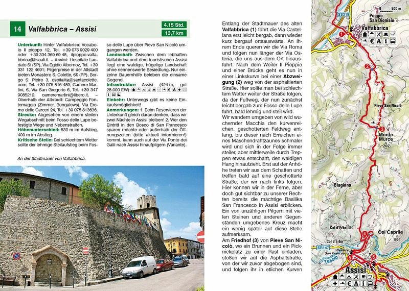 Der Franziskusweg ist 600 Kilometer lang, verteilt auf 33 logistisch sinnvoll zusammengestellten Etappen. Er kann auch sehr gut in mehreren Teilstücken absolviert werden. Der Wanderführer liefert alle wichtigen Informationen zu Wegführung, Schwierigkeiten, Unterkunft, Verpflegung und wichtiger Infrastruktur entlang des Wegs. Als Bonus gibt es in zahlreichen Unterkünften Rabatte bei Vorlage des Wanderführers. Detaillierte Karten und aussagekräftige Höhenprofile erleichtern die Orientierung. Geprüfte GPS-Tracks, die von der Internetseite des Bergverlag Rother heruntergeladen werden können, helfen bei der Orientierung unterwegs.