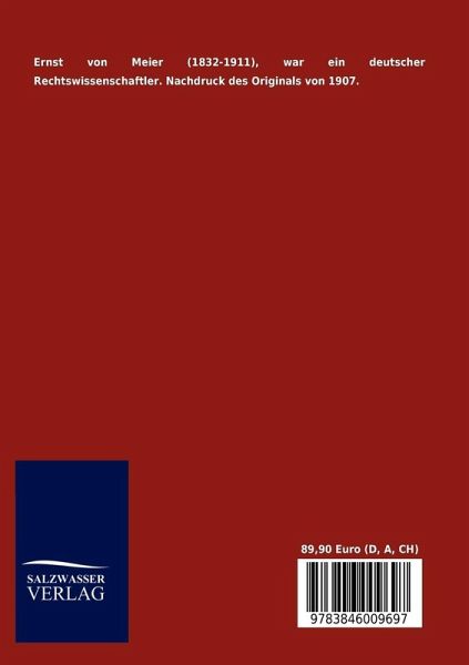 Ernst von Meier (1832-1911), war ein deutscher Rechtswissenschaftler. Nachdruck des Originals von 1907.