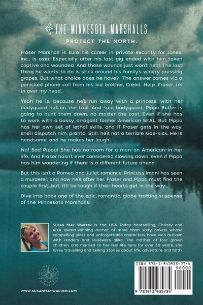 Fraser Marshall is pretty sure his career as a Spec Ops fighter is over. Yes, he's gone into private security, working for Jones, Inc., but his last gig ended with him wounded and taken captive. And those wounds just won't heal. The last thing he wants to do is stick around his family's winery pressing grapes. But what choice does he have? The answer comes via a panicked phone call from his kid brother, Creed. Help, Fraser. I'm in over my head... Yeah he is, because he's run away with a princess, with her bodyguard hot on the trail. And said bodyguard, Pippa Butler is going to hunt them down, no matter the cost. Even if she has to join forces with a bossy, arrogant former American SEAL. But Pippa has her own set of lethal skills, and if Fraser gets in the way, she'll leave him on the side of the road. Still, maybe he's not a terrible side-kick. He is handsome, and he makes her laugh... No, no, bad Pippa! She has no room for a man-an American-in her life. And Fraser hasn't ever considered slowing down. Even if Pippa has him wondering if there is a different future ahead. But there's more to the story than a Romeo-and-Juliet runaway romance. Princess Imani has seen a murder, and the perpetrator isn't going to let her get away. Will Fraser and Pippa find the couple first? And if they do, can they work together to keep them safe? It'll be tough if their hearts get in the way... Dive into book one of the epic, romantic, globe-trotting suspense of the Minnesota Marshalls!