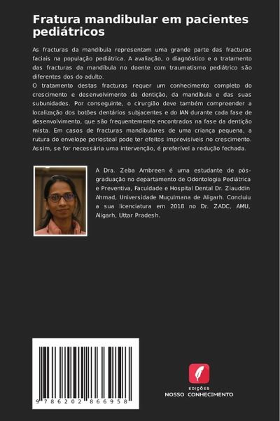 As fracturas da mandíbula representam uma grande parte das fracturas faciais na população pediátrica. A avaliação, o diagnóstico e o tratamento das fracturas da mandíbula no doente com traumatismo pediátrico são diferentes dos do adulto.O tratamento destas fracturas requer um conhecimento completo do crescimento e desenvolvimento da dentição, da mandíbula e das suas subunidades. Por conseguinte, o cirurgião deve também compreender a localização dos botões dentários subjacentes e do IAN durante cada fase de desenvolvimento, que são frequentemente encontrados na fase da dentição mista. Em casos de fracturas mandibulares de uma criança pequena, a rutura do envelope periosteal pode ter efeitos imprevisíveis no crescimento. Assim, se for necessária uma intervenção, é preferível a redução fechada.
