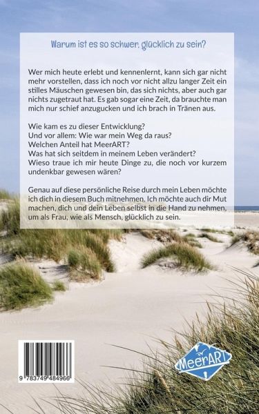 Frau sein, Mensch sein, glücklich sein... und wie MeerART mein Leben verändert hat. Warum ist es so schwer, glücklich zu sein? Wer mich heute erlebt und kennenlernt, kann sich gar nicht mehr vorstellen, dass ich noch vor nicht allzu langer Zeit ein stilles Mäuschen gewesen bin, das sich nichts, aber auch gar nichts zugetraut hat. Es gab sogar eine Zeit, da brauchte man mich nur schief anzugucken und ich brach in Tränen aus. Wie kam es zu dieser Entwicklung? Und vor allem: Wie war mein Weg da raus? Welchen Anteil hat MeerART? Was hat sich seitdem in meinem Leben verändert? Wieso traue ich mir heute Dinge zu, die noch vor kurzem undenkbar gewesen wären? Genau auf diese persönliche Reise durch mein Leben möchte ich dich in diesem Buch mitnehmen. Ich möchte auch dir Mut machen, dich und dein Leben selbst in die Hand zu nehmen, um als Frau, wie als Mensch, glücklich zu sein.