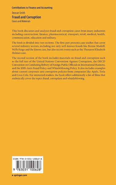 The book is divided into two sections. The first part presents case studies that cover several industry sectors, including not only well-known frauds like Bernie Madoff, Wells Fargo and the Enron case, but also recent events such as the Theranos/Elisabeth Holmes case.