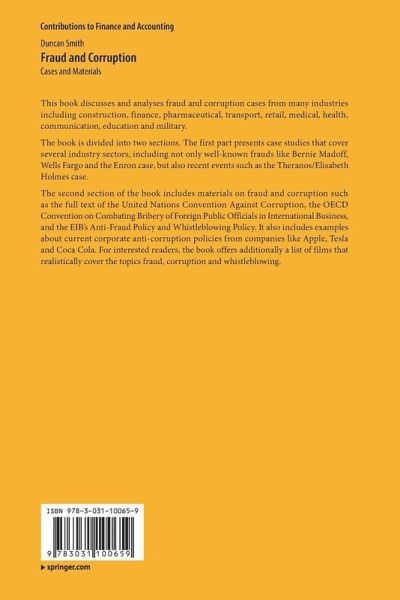The book is divided into two sections. The first part presents case studies that cover several industry sectors, including not only well-known frauds like Bernie Madoff, Wells Fargo and the Enron case, but also recent events such as the Theranos/Elisabeth Holmes case.