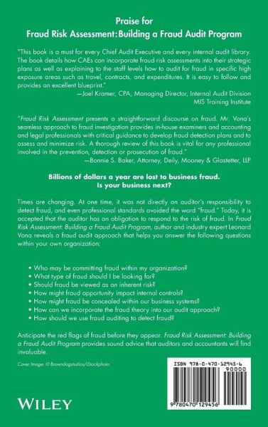 Times are changing. At one time, it was not directly an auditor's responsibility to detect fraud, and even professional standards avoided the word "fraud." Today, it is accepted that the auditor has an obligation to respond to the risk of fraud. In Fraud Risk Assessment: Building a Fraud Audit Program, author and industry expert Leonard Vona reveals a fraud audit approach that helps you answer the following questions within your own organization: