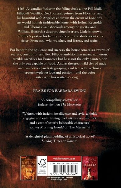1765. Filipo di Vecellio of Florence, portrait painter, is the toast of London: rich, successful, and married to Angelica, known as the most beautiful woman in the city. Their Pall Mall home is the hub of the art world; their impressive social gatherings run so smoothly by Filipo's silent sister, Francesca. But beneath the surface, the house conceals a swarm of dangerous secrets.