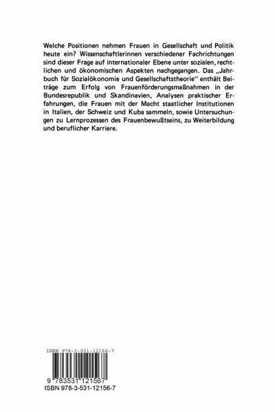 1 Manner und Frauen in Fiihrungspositionen in der Bundesrepublik Deutschland - Er gebnisse einer schriftlichen Umfrage, herausgegeben von Capital, Koln 1986, zu be ziehen bei Gruner &: Jahr, Hamburg. 2 Die Beschrinkung auf die mittlere Fiihrungsebene soUte UntemehmerInnen aus der Untersuchung ausschlieBen. Dennoch gaben immerhin 23 % der Frauen - jedoch nur 10 % der Manner - an, daB ihre Position in einem beteiligungsmiiBigen und/oder fa miliiiren Zusammenhang mit dem Untemehmen stehe. Jahrbuch fOr Sozialokonomie und Gesellschaftstheorie Lieferbare Bande: Hochschule fUr Wirtschaft und Schwerpunkten des aktuellen Politik Hamburg (Hrsg.) Themas ,Frauen - Macht - Poli tik'. Restauration im Recht 1. Die kritischen Untersuchungen 1988. 232 S. Kart. Hochschule fUr Wirtsciiaft und von Emanzipation und Quotie Die ,Restauration in Recht und Ju Politik Hamburg (Hrsg.) rung zeigen begrenzte, aber stiz' nach dem 2. Weltkrieg gehort stetige Erfolge bei der Anwen Arbeitsmarktpolitik zu den eher verdrangten als auf dung der Frauenforderungs 1978. 215 S. Kart. gearbeiteten Kapiteln der bundes ma[l,nahmen in der Bundesre deutschen Entwicklung. Die Auto publik und in Skandinavien. ren dieses Bandes untersuchen Hochschule fur Wirtschaft und 2. Analyseh von praktischen Er anhand typischer Beispiele, in Politik Hamburg (Hrsg.) fahrungen, die Frauen mit der welch em Ma[l,e restaurative Ten Macht staatlicher Institutionen Wissenschaft und denzen in Recht Justiz und sammeln, verweisen auf die offentlichen Dienst der Bundes Arbeitnehmerinteressen Produktivitat eines ,systemati republi.k (- ein 8eitrag behandelt 1980. 205 S. Kart. schen Vagabundierens": Ein auch Osterreich -) sich durch unbefangener Feminismus, gesetzt ha ben.