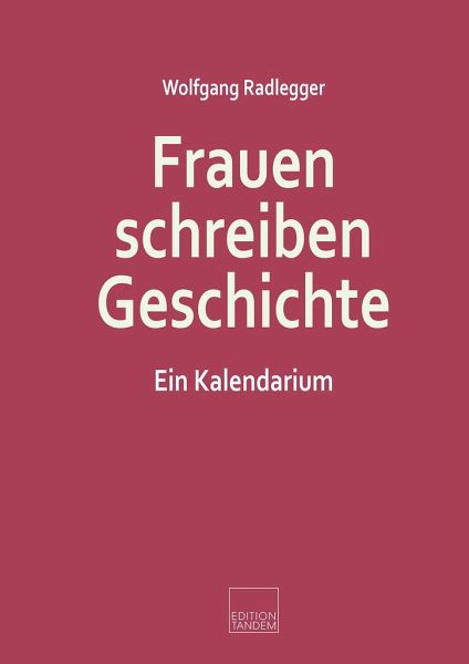 Nach dem Buch Geschichte anders notiert folgt nun ein weiteres Kalendarium: Frauen schreiben Geschichte. Auch darin behandelt Wolfgang Radlegger außergewöhnliche Frauen aus verschiedenen Jahrhunderten. Sie sind meist unbekannt und unbedankt geblieben, haben aber die Geschichte ihrer Zeit, ihrers Landes und auch der gesamten Welt entscheidend mitgestaltet und geprägt.Wolfgang Radlegger ist es auch hier gelungen, sein umfassendes historisches Wissen und sein sozialpolitisches Engagement nicht nur geschickt zu verknüpfen, sondern einem interessierten Publikum die einzelnen Frauenschicksale spannend zu vermitteln.