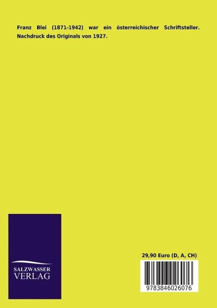 Franz Blei (1871-1942) war ein österreichischer Schriftsteller. Nachdruck des Originals von 1927.