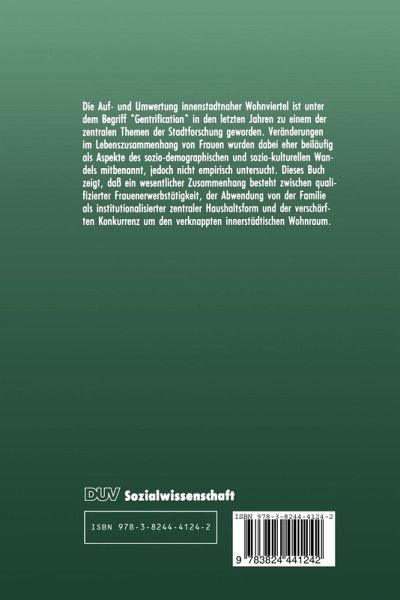 1. Einleitung: (K)Ein Feministischer Ansatz in der Stadt- und Regionalsoziologie.- 1.1 Geschlecht als Kategorie der Ungleichheitsforschung.- 1.2 Die Thematisierung der Frau in der Stadt- und Regionalforschung.- 1.3 "Weiße Flecken" in der Gentrificationforschung.- 1.4 Ziel und Aufbau der Arbeit.- 2. Bildung, Ökonomischer Strukturwandel und Frauenerwerbstätigkeit: Chancen und Grenzen.- 2.1 Zur Angleichung der Bildungschancen.- 2.2 Die Integration der Frauen in den Arbeitsmarkt: Voraussetzung für neue Lebensentwürfe.- 2.3 Deregulierung und Flexibilisierung des Arbeitsmarktes: Kein Zurück zur weiblichen Normalbiographie.- 2.4 Kind und/oder Karriere.- 2.5 Zusammenfassung: Die Polarisierung der Lebenslagen von Frauen.- 3. Neue Rollenansprüche und die Pluralisierung der Haushaltsstrukturen.- 3.1 Ein "neues" Rollenverständnis bei Frauen und Männern?.- 3.2 Die nichteheliche Lebensgemeinschaften.- 3.3 Die alleinwohnende Frau.- 3.4 Zusammenfassung: Das Ende der Kleinfamilie?.- 4. Gentrification: Räumliche Konsequenzen der Veränderten Frauenrolle.- 4.1 Von der Suburbanisierung zur Attraktivität der Innenstädte.- 4.2 Zur Theorie der Gentrification.- 4.3 Die feministische Perspektive auf Gentrification.- 4.4 Family-Gentrification.- 4.5 Zusammenfassung: Die räumliche Polarisierung der Lebenslagen von Frauen.- 5. Zur Integration der Feministischen Perspektive in die Nachfrageorientierte Gentrificationforschung.- 5.1 Die alleinlebenden Frauen.- 5.2 Die Paare ohne Kinder.- 5.3 Familienstrukturen in der inneren Stadt.- 6. Methodische Anmerkungen.- 6.1 Zu den Möglichkeiten und Grenzen der Sekundäranalyse.- 6.2 Datensatz und Auswertung.- 7. Gentrification als Ausdruck Sozial-Räumlicher Ungleichheit Nach dem Geschlecht: Alleinlebende Frauen und Männer.- 7.1 Diesoziale Situation alleinlebender Frauen und Männer.- 7.2 Die Wohnsituation alleinlebender Frauen und Männer.- 7.3 Alleinlebende Frauen als Pioniere und Gentrifier.- 7.4 Die Lebensziele alleinlebender Frauen und Männer.- 7.5 Die Einstellung zur Auf- und Umwertung.- 7.6 Zusammenfassung: Alleinlebende Frauen und Männer als Konkurrenten auf dem innerstädtischen Wohnungsmarkt.- 8. Doppel-Verdiener- und Doppel-Karriere-Haushalte: Paare Ohne Kinder.- 8.1 Gleichberechtigte und traditionelle Partnerschaften.- 8.2 Gleichberechtigung und Lebensziele.- 8.3 Die Typologie der Doppel-Verdiener- und Doppel-Karriere-Haushalte.- 8.4 Die Position auf dem innerstädtischen Wohnungsmarkt.- 8.5 Zusammenfassung: Die Typologie der Paare ohne Kinder.- 9. Innenstadtnahes Wohnen und die Vereinbarkeit von Beruf und Familie: Family-Gentrification.- 9.1 Vom Gentrifier- zum Familienhaushalt.- 9.2 Familien und "neue" Rollenmuster.- 9.3 Die Lebensziele von Müttern und Vätern.- 9.4 Die Wohnbedingungen der Familien.- 9.5 Die Einstellung zur Auf- und Umwertung.- 9.6 Bleiben oder Gehen: Zuzugsgründe und Fortzugsabsichten.- 9.7 Zusammenfassung: Familienleben in der inneren Stadt.- 10. Zusammenfassung: Die Rolle der Frauen im Prozess der Gentrifizierung.- 10.1 Die Konkurrenten auf dem innerstädtischen Wohnungsmarkt.- 10.2 Veränderte Lebensentwürfe und die Positionen im Aufwertungsprozeß.- 10.3 Frauen und Gentrification - Kein feministischer Ansatz in der Stadt- und Regionalsoziologie.- Verzeichnis der Abbildungen und Tabellen.