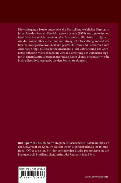 Die vorliegende Studie untersucht die Darstellung weiblicher Figuren in Jorge Amados Roman Gabriela, cravo e canela (1958) aus topologischer, feministischer und intersektionaler Perspektive. Die Autorin zeigt auf, wie der Roman über seine raumnarratologische Gestaltung anhand der Identitätskategorien race, class und gender Differenz und Hierarchien zum Ausdruck bringt. Mittels der Raumsemantik Jurij Lotmans und der Chronotopostheorie Michael Bachtins wird die Verortung der weiblichen Figuren in einem kontrastierenden narrativen Raum ebenso erkennbar wie die binäre Geschlechtermatrix, die den Roman strukturiert.