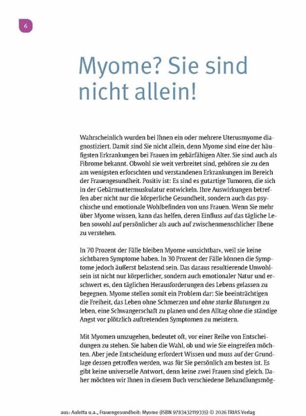 Myome gelten zwar als gutartig, sind aber häufig sehr unangenehm. Sie können Schmerzen im Unterbauch, starke Monatsblutungen, Verstopfung, Rückenschmerzen verursachen und Folgeerkrankungen nach sich ziehen. Auch auf die Fruchtbarkeit und eine Schwangerschaft können sie sich ungünstig auswirken. Aber keine Sorge, Sie müssen sich nicht mit Ihren Myomen abfinden. Dr. Valentina Auletta, Frauenärztin und Myom-Spezialistin, zeigt Ihnen alle wirksamen Therapien auf, die Myomen Einhalt gebieten und Beschwerden effektiv lindern.