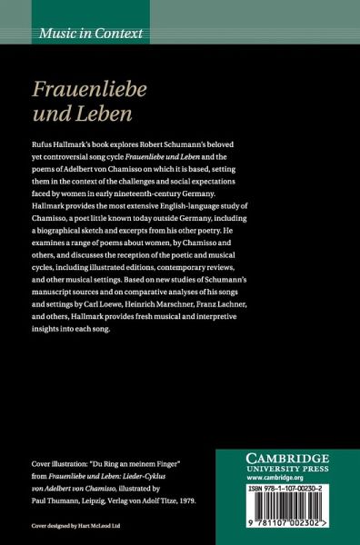 Rufus Hallmark's book explores Robert Schumann's beloved yet controversial song cycle Frauenliebe und Leben and the poems of Adelbert von Chamisso on which it is based, setting them in the context of the challenges and social expectations faced by women in early nineteenth-century Germany. Hallmark provides the most extensive English-language study of Chamisso, a poet little known today outside Germany, including a biographical sketch and excerpts from his other poetry. He examines a range of poems about women, by Chamisso and others, and discusses the reception of the poetic and musical cycles, including illustrated editions, contemporary reviews, and other musical settings. Based on new studies of Schumann's manuscript sources and on comparative analyses of his songs and settings by Carl Loewe, Heinrich Marschner, Franz Lachner and others, Hallmark provides fresh musical and interpretive insights into each song.