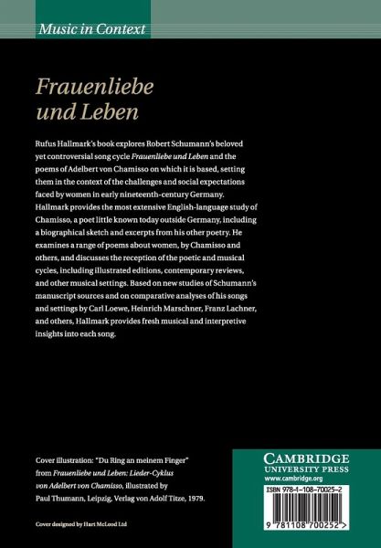 Introduction 1. Women in early nineteenth-century Germany: societal conventions, ideology, relationships Part I. The Poetry: 2. Adelbert von Chamisso: a sketch of his life and works 3. Chamisso's poems about women: a literary context for Frauenliebe und Leben Part II. The Music: 4. The musical reception of Frauenliebe und Leben 5. Schumann at work on his songs 6. Schumann's cycle: analysis and comparative interpretation Afterword Appendix 1. Chronological listing of nineteenth-century Frauenliebe und Leben settings Appendix 2. Poetry in the original German and in English translation.