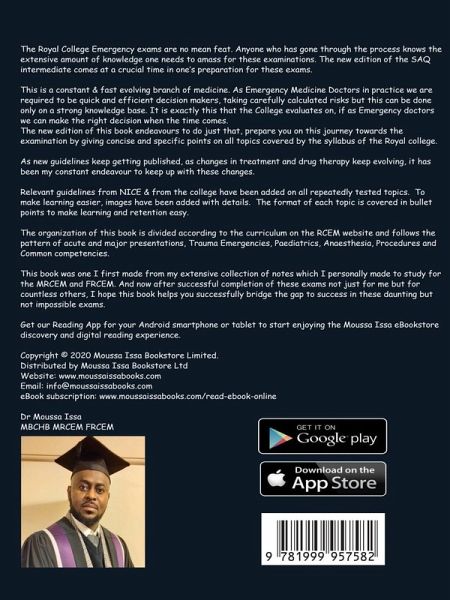 A new updated edition of the FRCEM Intermediate SAQ. This 2020 edition of the revised material has been updated to include new and revised guidelines, correct typographical errors and reference all chapters as recommended by readers. It replaces the 2019 edition. The Royal University Emergency examinations are no easy task. Anyone who has been through the process knows the extensive knowledge one needs to accumulate for these exams. The new edition of SAQ intermediate comes at a crucial time in preparation for these exams. This is a constantly and rapidly evolving branch of medicine. Emergency medicine practitioners need to make quick and efficient decisions and take carefully calculated risks, but this can only be done with a solid knowledge base. And that is precisely what the University emphasises: whether we, as emergency physicians, can make the right decision when it matters. The new edition of this book seeks to do just that, to prepare you on that journey to the exam by providing concise and specific points on all the topics covered in the Royal University syllabus. With new guidelines being published all the time and treatment and drug therapy constantly evolving, it has been my constant endeavour to keep up with these changes. Volume 1 contains:Section I: Acute & Major Presentations Section II: Ultrasound Volume 2 Contains:Section III: Trauma Presentations Section IV: Paediatric Presentations Section V: Anaesthetic Competences Section VI: Procedure Competences Section VII: Common Competences