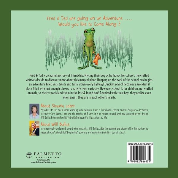 Fred & Ted is a charming story of friendship. Missing their boy as he leaves for school , the stuffed animals decide to discover more about this magical place. Hopping on the back of the school bus begins an adventure filled with twists and turns down every hallway! Quickly, school becomes a wonderful place filled with just enough classes to satisfy their curiosity. However, school is for children, not stuffed animals, so their travels land them in the lost & found box! Reunited with their boy, they realize even when apart, they are in each other's hearts.