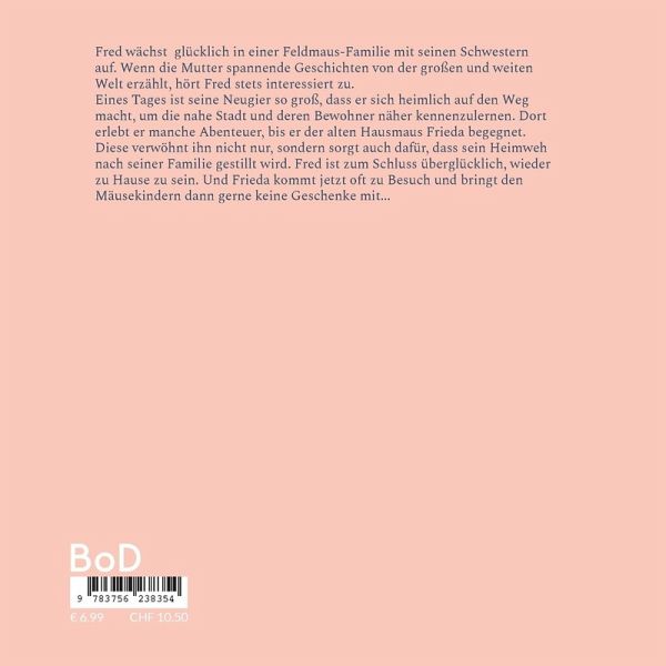 Fred wächst glücklich in einer Feldmaus-Familie mit seinen Schwestern auf. Wenn die Mutter spannende Geschichten von der großen und weiten Welt erzählt, hört Fred stets interessiert zu.Eines Tages ist seine Neugier so groß, dass er sich heimlich auf den Weg macht, um die nahe Stadt und deren Bewohner näher kennenzulernen. Dort erlebt er manche Abenteuer, bis er der alten Hausmaus Frieda begegnet. Diese verwöhnt ihn nicht nur, sondern sorgt auch dafür, dass sein Heimweh nach seiner Familie gestillt wird. Fred ist zum Schluss überglücklich, wieder zu Hause zu sein. Und Frieda kommt jetzt oft zu Besuch und bringt den Mäusekindern dann gerne kleine Geschenke mit...Herausgeber: Hans-Jürgen Sträter, Adlerstein Verlag