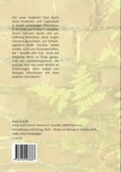 Der Leser begleitet Fred durch seine Kindheits- und Jugendzeit in einem schwierigen Elternhaus. Er ist dabei, wenn Fred in verschiedenen Schulen durch sein unstillbares Bedürfnis, seine engen Grenzen auszuloten, unsanft auf dieselben stößt.Günther Seidel erzählt auch von Freundschaften, die - obwohl manches Mal auch sehr intim - doch auf tragische Weise zu Ende gehen. Und von vielen Ausbildungsjahren, die geprägt von einer Vielfalt an Erfahrungen, nicht zuletzt von überaus farbigen Erlebnissen mit dem anderen Geschlecht erzählen.