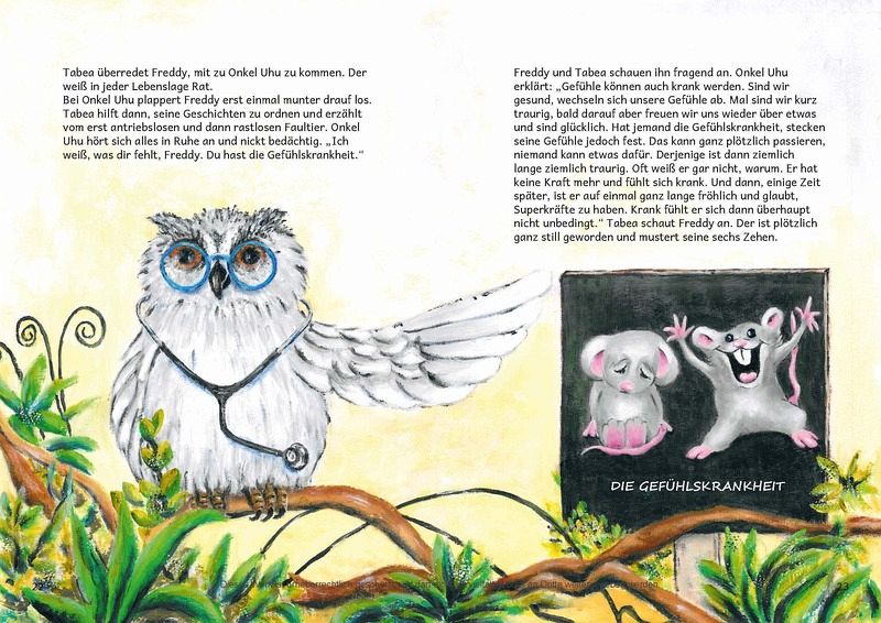 Ein manisches Faultier?! Was ist nur mit Freddy los? Gestern hing er noch schlapp an seinem Ast. Und heute posiert er im Glitzeranzug und singt dabei so schräg, dass die Affen kreischend davonlaufen! Freddys Freunde verstehen die Welt nicht mehr. Was hat es nur auf sich mit diesen seltsamen Gefühlsschwankungen? Ob wohl der weise Onkel Uhu etwas darüber weiß?Für Kinder kann es sehr verwirrend sein, wenn in der Familie jemand an einer bipolaren Erkrankung leidet. Freddys lustige und einfühlsam erzählte Geschichte hilft ihnen zu verstehen, woher die wechselnden Gefühle der Betroffenen kommen und dass die Kinder nicht der Grund dafür sind. Im Ratgeberteil finden Erwachsene wertvolle Hintergrundinformationen und konkrete Tipps, um mit den Herausforderungen durch die Erkrankung umzugehen und mit den Kindern ins Gespräch zu kommen.Für Kinder ab 3 Jahren.
