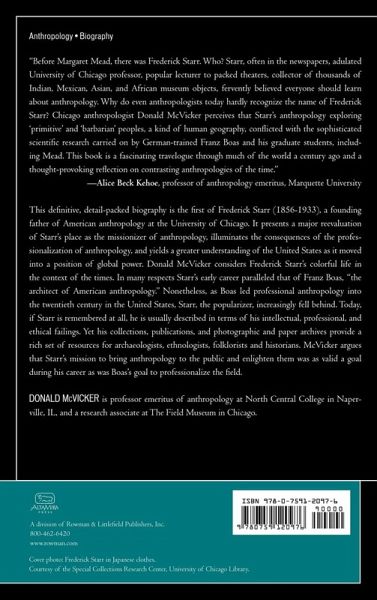 This is the first biography of Frederick Starr (1856-1933), a founding father of American anthropology at the University of Chicago. It presents a major reevaluation of Starr's place in anthropology, illuminates the consequences of the professionalization of anthropology, and yields a greater understanding of the United States as it moved into a position of global power.