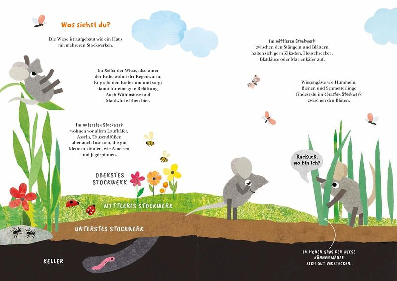Auf einer Wiese gibt es so viel zu entdecken! Der neugierige Frederick und seine Mäusefreunde finden heraus, welche Tiere herumfliegen und umherkrabbeln. Sie riechen an bunten Blumen und lauschen den summenden Bienen. In diesem Sachbilderbuch lernen die Kleinen zusammen mit Frederick spielerisch mit allen Sinnen verschiedene Tiere und Pflanzen auf der Wiese kennen. Erstes Sachwissen kombiniert mit liebevollen Reimen als Vorbereitung für den nächsten Ausflug in die Natur.