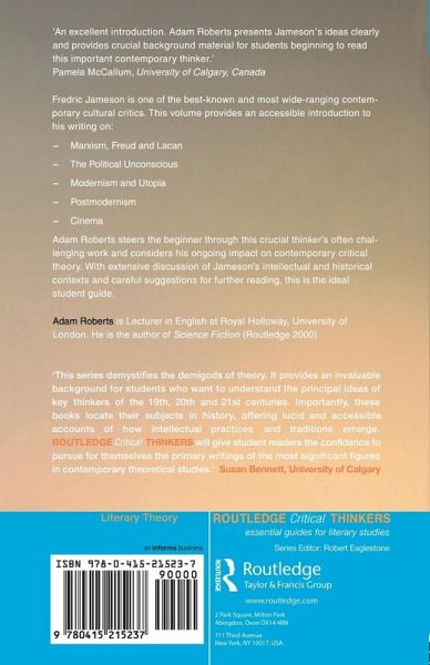 Widely recognised as one of today's most important cultural critics, Adam Roberts offers an engaging introduction to this crucial figure, which will convince any student of contemporary theory that Jameson must be read.