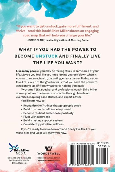 Free yourself from bad habits and life-stifling obstacles with hands-on exercises, inspiring case studies, and expert advice from two-time TEDx speaker and professional coach Shira Miller. "If you want to get unstuck, gain more fulfillment, and thrive-read this book!" --- Dorie Clark, Wall Street Journal bestselling author of The Long Game Ever feel like you're wading through quicksand? Can't breathe? Constantly disappointed and stressed? Like many people, you may be feeling stuck in some area of your life. In Free and Clear, two-time TEDx speaker and professional coach Shira Miller provides a witty, accessible, and proven step-by-step roadmap to overcome obstacles and live the life you want. After going from financial ruin to prosperity, chronic health challenges to wellness, obesity to healthy weight, divorce to lasting love, and an unfulfilling career to a purpose-driven life, Shira launched a three-year journey of interviewing 100+ people who have also been "stuck" but are now living the lives they craved. She meticulously mined their stories for insights and paired them with EXPERT ADVICE, HANDS-ON EXERCISES, and inspiring CASE STUDIES - a satisfying combination for readers who feel like life's on hold or have ongoing issues with money, health, parenting, career, and relationships. In the book, you'll learn how to: Recognize the 7 things that get people stuck Build trust and confidence in yourself Become resilient and choose positivity Pivot with a purpose Build a lasting support system Consistently prioritize wellness Whatever's holding you back, you can find the power in these pages to free yourself, transform, and realize your potential.