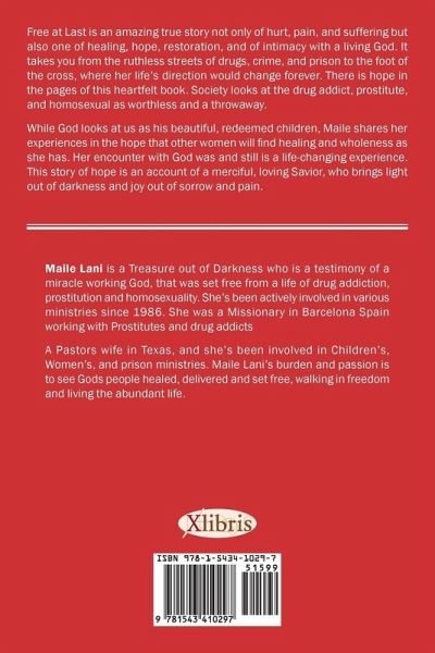 Free at Last is an amazing true story not only of hurt, pain, and suffering but also one of healing, hope, restoration, and of intimacy with a living God. It takes you from the ruthless streets of drugs, crime, and prison to the foot of the cross, where her life’s direction would change forever. There is hope in the pages of this heartfelt book. Society looks at the drug addict, prostitute, and homosexual as worthless and a throwaway. While God looks at us as his beautiful, redeemed children, Maile shares her experiences in the hope that other women will find healing and wholeness as she has. Her encounter with God was and still is a life-changing experience. This story of hope is an account of a merciful, loving Savior, who brings light out of darkness and joy out of sorrow and pain.