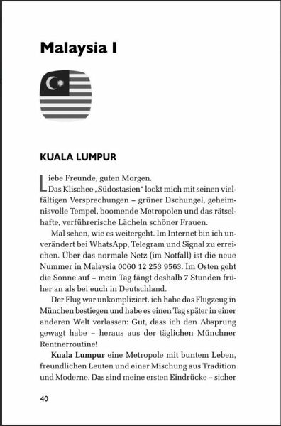 Authentische Reiseerlebnisse eines Menschen, der auch im hohen Alter seinen Träumen folgt Scharfsinnige Beobachtungen zur westlichen und östlichen Gesellschaft Inspirierender Mix aus Reisebericht, Lebensweisheit und kritischer Zeitanalyse Praktische Tipps für Motorradreisen in Südostasien Mut machende Geschichte für alle, die vom Ausbrechen träumen