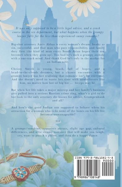 It was only supposed to be a little legal advice, and a crash course in the sex department, but what happens when the grumpy lawyer falls for the less-than-experienced-sunny romantic in this interracial, contemporary romance? Big-shot attorney Aariv Abbas is every woman's dream: hunky as sin, successful, and that man who puts responsibility, and family duty first (the kind of man every South Asian hopes their son becomes when they grow up). Too bad he's such a grumpy asshole with a one-track mind. And thank God he's only in the market for an Indian wife. Chrissy Smyth is young, brash, full of hopes, and a head-in-the-clouds dreamer, but a chance encounter with a grumpy lawyer has her realizing that romance isn't for everyone. And she doesn't need to waste her time with nonbelievers like him, no matter how hot or big his ... biceps may be. But when her life takes a major misstep and her family's business gets pulled into a serious Russian crime ring, what's a girl to do but look to the only attorney she knows for advice, Grumpenhunk and all? And how's the good Indian son supposed to behave when his attraction for a woman who ticks none of the boxes on his life list becomes unmanageable? A grumpy/sunshine, opposites attract, slight age gap, multicultural differences, and ultra steamy romance that will make you laugh, cry, want to punch a pillow, and then do a happy dance.