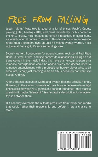 Justin "Matts" Matthews is good at a lot of things: Rubik's Cubes, playing guitar, herding cattle, and most importantly for his career in the NHL, hockey. He's not good at human interactions or social cues, especially when it comes to women. This deficiency is an annoyance rather than a problem, right up until he meets Sydney Warren. If it's not love at first sight, it's sure something close.Sydney Warren, frontwoman for up-and-coming rock band Red Right Hand, is fierce, driven, and she doesn't do relationships. Being an out trans woman in the music industry is more than enough pressure-a romantic entanglement would be added stress she doesn't need. A romantic entanglement with a professional hockey player who, to all accounts, is only just learning to be an ally is definitely not what she needs. And yet.After a chance encounter, Matts and Sydney become unlikely friends. However, in the stolen moments of their busy schedules--late-night phone calls between NHL games and concert tour dates-they start to question if maybe "friendship" isn't so apt a description for whatever this is between them.But can they overcome the outside pressures from family and media that would rather their relationship end before it has a chance to start?