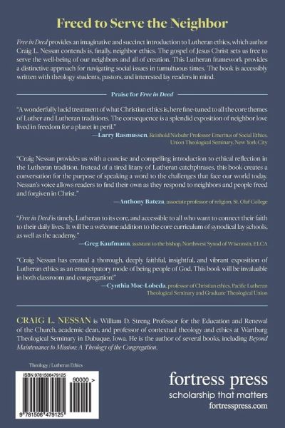 Free in Deed provides an imaginative and succinct introduction to Lutheran ethics, which the author contends is, finally, neighbor ethics. The gospel of Jesus Christ sets us free to serve neighbors--including all creation--and their well-being. This Lutheran framework provides a distinctive approach for navigating social issues in tumultuous times.