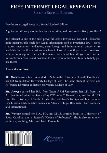 A guide for attorneys to the best free legal sites, and how to effectively use them! The internet is one of the most powerful tools a lawyer can use, and it becomes more indispensable each day. Legal information used in practicing law – cases, statutes, regulations, and more, even foreign and international sources – are available for free if you just know where to look. No monthly charges, download fees, or subscriptions needed. For many sources of law all you need are an internet connection… and this book to direct you to the best sites and to help you use them!