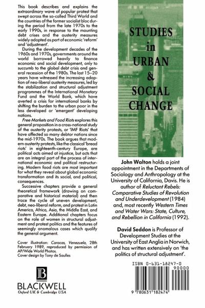 This book describes and explains the extraordinary wave of popular protest that swept across the so-called Third World and the countries of the former socialist bloc during the period from the late 1970s to the early 1990s, in response to the mounting debt crisis and the austerity measures widely adopted as part of economic "reform" and "adjustment". During the development decades of the 1960s and 1970s, governments around the world borrowed heavily to finance economic and social development, only to succumb to the global debt crisis and general recession of the 1980s. The last 15-20 years have witnessed the increasing adoption of neo-liberal austerity measures, led by the stabilization and structural adjustment programs of the International Monetary Fund and the World Bank, which have averted a crisis for international banks by shifting the burden to the urban poor in the less developed or 'emergent, ' developing nations. Free Markets and Food Riots explores this general proposition in a cross-national study of the austerity protests, or the 'IMF Riots' that have affected so many debtor nations since the mid-1970s. The book argues that modern austerity protests, like the classical "bread riots" in eighteenth-century Europe are political acts aimed at injustice, but acts that are an integral part of the process of international economic and political restructuring. Modern food riots are most important for what they reveal about global economic transformation and its social, and political, consequences. Successive chapters provide a general framework (drawing on comparative and historical material) and then trace the cycle of uneven development, debt, neo-liberal reform, and protest in Latin America, Africa, Asia, the Middle East, and Eastern Europe. Additional chapters focus on the role of women in structural adjustment and protest politics and the features of seemingly anomalous cases which qualify the general argument.
