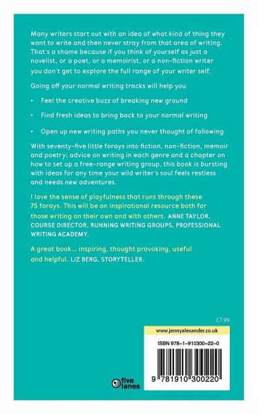 Many writers start out with an idea of what kind of thing they want to write and then never stray from that area of writing. That’s a shame because if you think of yourself as just a novelist, or a poet, or a memoirist, or a non-fiction writer you don’t get to explore the full range of your writer self. Going off your normal writing tracks will help you Feel the creative buzz of breaking new ground Find fresh ideas to bring back to your normal writing Open up new writing paths you never thought of following With seventy-five little forays into fiction, non-fiction, memoir and poetry; advice on writing in each genre and a chapter on how to set up a free-range writing group, this book is bursting with ideas for any time your wild writer’s soul feels restless and needs new adventures