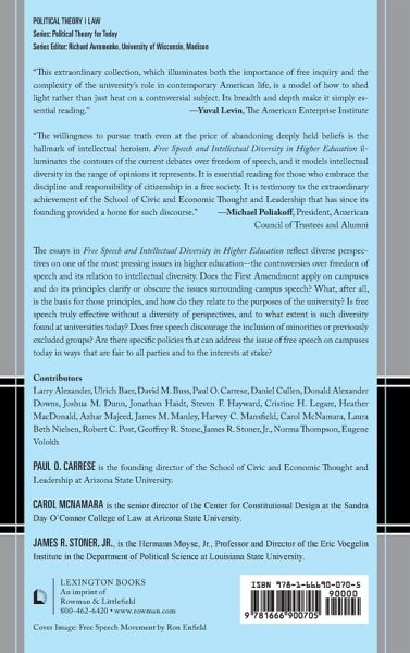 Eighteen essays reflect diverse perspectives on the meaning of and policy about free speech and intellectual diversity at universities: whether the First Amendment applies on campus, what principles underlie free speech, does free speech matter without a diversity of intellectual perspectives, does free speech promote or inhibit inclusiveness?