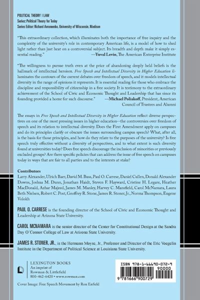 Eighteen essays reflect diverse perspectives on the meaning of and policy about free speech and intellectual diversity at universities: whether the First Amendment applies on campus, what principles underlie free speech, does free speech matter without a diversity of intellectual perspectives, does free speech promote or inhibit inclusiveness?
