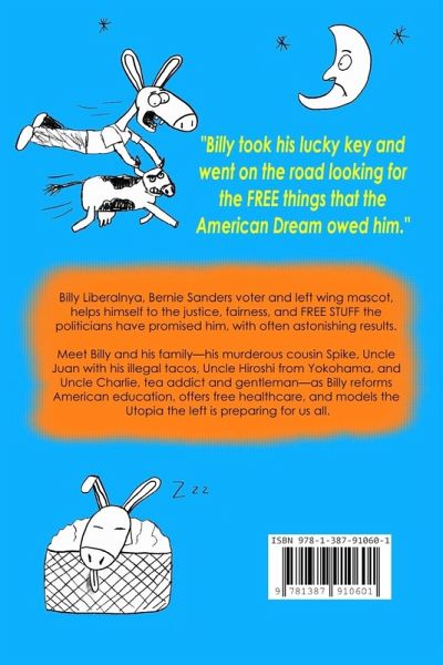 Billy Liberalnya, Bernie Sanders voter and left wing mascot, helps himself to the justice, fairness, and FREE STUFF the politicians have promised him, with often astonishing results. Meet Billy and his family-his murderous cousin Spike, Uncle Juan with his illegal tacos, Uncle Hiroshi from Yokohama, and Uncle Charlie, tea addict and gentleman-as Billy reforms American education, offers free healthcare, and models the Utopia the left is preparing for us all.