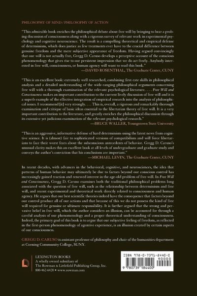 Chapter 1: The Problem of Free Will: A Brief Introduction and Outline of Position Chapter 2: Against Libertarianism Chapter 3: Against Compatibilism Chapter 4: Consciousness and Free Will (I): Automaticity and the Adaptive Unconscious Chapter 5: Consciousness and Free Will (II): Transparency, Infallibility, and the Higher-Order Thought Theory Chapter 6: Consciousness and Free Will (III): Intentional States, Spontaneity, and Action Initiation Chapter 7: Consciousness and Free Will (IV): Self-Consciousness and Our Sense of Agency