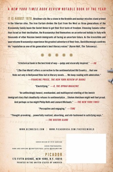 A New York Times Notable Book for 2011 A Globe and Mail Best Books of the Year 2011 Title Summer, 1978. Brezhnev sits like a stone in the Kremlin, Israel and Egypt are inching towards peace, and in the bustling, polyglot streets of Rome, strange new creatures have appeared: Soviet Jews who have escaped to freedom through a crack in the Iron Curtain. Among the thousands who have landed in Italy to secure visas for new lives in the West are the members of the Krasnansky family - three generations of Russian Jews. There is Samuil, an old Communist and Red Army veteran, who reluctantly leaves the country to which he has dedicated himself body and soul; Karl, his elder son, a man eager to embrace the opportunities emigration affords; Alec, his younger son, a carefree playboy for whom life has always been a game; and Polina, Alec's new wife, who has risked the most by breaking with her old family to join this new one. Together, they will spend six months in Rome - their way station and purgatory. They will immerse themselves in the carnival of emigration, in an Italy rife with love affairs and ruthless hustles, with dislocation and nostalgia, with the promise and peril of a new life. Through the unforgettable Krasnansky family, David Bezmozgis has created an intimate portrait of a tumultuous era. Written in precise, musical prose, The Free World is a stunning debut novel, a heartfelt multigenerational saga of great historical scope and even greater human depth. Enlarging on the themes of aspiration and exile that infused his critically acclaimed first collection, Natasha and Other Stories, The Free World establishes Bezmozgis as one of our most mature and accomplished storytellers.