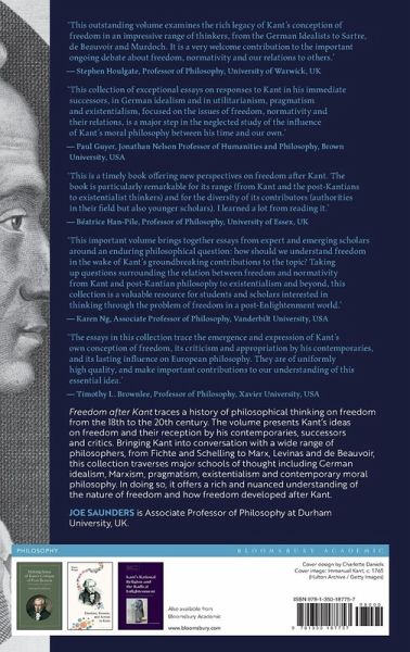 Freedom after Kant situates Kant's concept of freedom in relation to leading philosophers of the period to trace a detailed history of philosophical thinking on freedom from the 18th to the 20th century. Beginning with German Idealism, the volume presents Kant's writings on freedom and their reception by contemporaries, successors, followers and critics. From exchanges of philosophical ideas on freedom between Kant and his contemporaries, Reinhold and Fichte, through to Kant's ideas on rational self-determination in Hegel and Schelling, we see Kant's original arguments transformed through concepts of autonomy, freedom and absolutes. The political aspect of Kant's freedom finds further articulation in chapters on Marx and Mill who developed their own notions of political freedom after Kant. Revealing how Kant's concept of freedom shaped the history of philosophy in the broadest sense, contributors chart the development of an ethics of freedom in the 20th century which brings Kant into conversation with Heidegger, Beauvoir, Sartre, Levinas and Murdoch. This line of thinking on freedom signals a new departure for Kantian studies which brings his ideas into the present day and traverses major schools of thought including Idealism, Marxism, existentialism and moral philosophy.