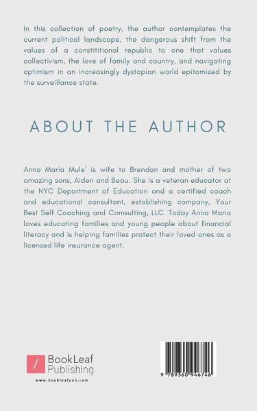 In this collection of poetry, the author contemplates the current political landscape, the dangerous shift from the values of a constititional republic to one that values collectivism, the love of family and country, and navigating optimism in an increasingly dystopian world epitomized by the surveillance state.