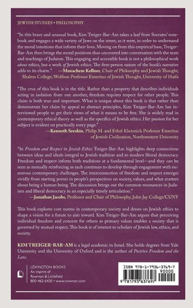 This book brings together people’s intuitions, philosophical theories, and principles of Jewish ethics to suggest where our values should lead us. The author argues that a moral freedom of respect upholds freedom of the Self and respect for the Other.
