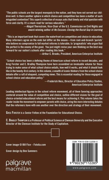 "The public schools are the largest monopoly in the nation, and they have not served our children well. Is there another sphere in which choice and competition has been a matter of such misguided contention? This superb collection of essays asks that timely and vital question with force and clarity. It's a must-read for serious educators." - Abigail Thernstrom, Vice-chair, U.S. Commission on Civil Rights, Adjunct Scholar, American Enterprise Institute